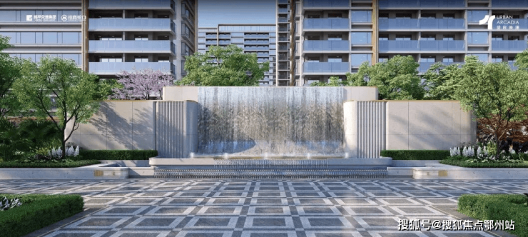 很多楼盘水池铺的都是瓷砖马赛克, 但它却用上了意大利卡拉卡白大理石,将池水衬出梦幻的蒂芙尼蓝 。池边摇曳着油橄榄树、造型紫薇,高级感丝毫不逊现在那几个网红豪宅。