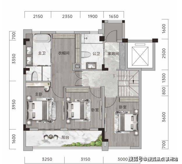 堪比140㎡大平层的户型;约4㎡私享电梯前厅,