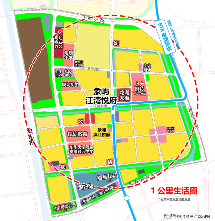 奉贤区金汇镇金碧路与南行港路交汇处(龙湖金汇天街西侧),直线距黄浦江岸线约1.2公里