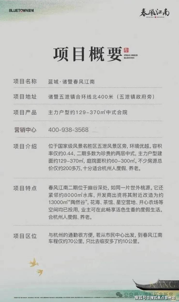 项目藏身于三面环山的幽静翠谷,北望潋滟碧湖,诸暨蓝城春风江南售楼处电话:400-152-4009【售楼中心】绍兴诸暨蓝城春风江南官方售楼处电话:400-152-4009【售楼处电话/地址】诸暨蓝城春风江南售楼处电话:400-152-4009【官方认证】