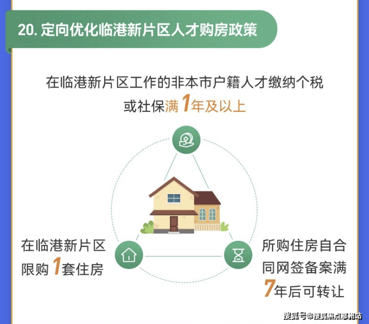 外地户籍在临港缴满1年社保或个税,即可购买临港新片区内一套房,所购住房自合同网签备案满7年后才可转让!