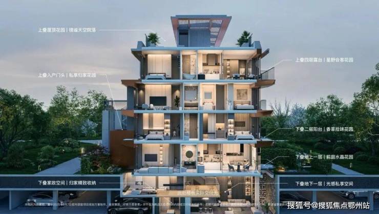 上叠则拥有独立花园露台(毛坯交付),业主可根据喜好改造为空中花园、观景吧台或星空休憩区,将城市风光尽收眼底。