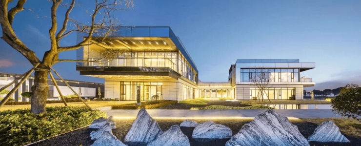 项目以极简的设计,自然的渗透,极致的细节打造完美的建筑与景观,以玻璃体的晶透,打破视觉上的隔离,形成一种无界空间,无限延伸的视觉场景,将建筑与环境,融为一体。