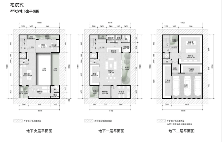 以300㎡户型为主,局部设置240㎡、400㎡等户型。
