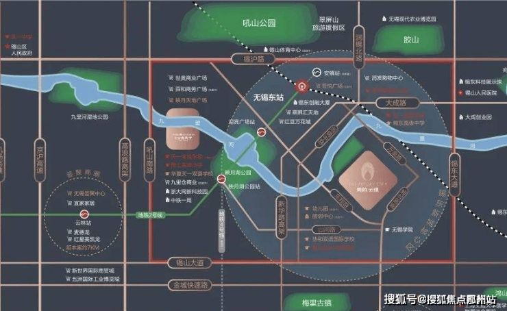 枢纽中心:苏南硕放机场、无锡高铁东站、锡张/锡通高速公路、地铁2号线、新华路高架等多维立体交通环伺,50分钟长三角生活圈;