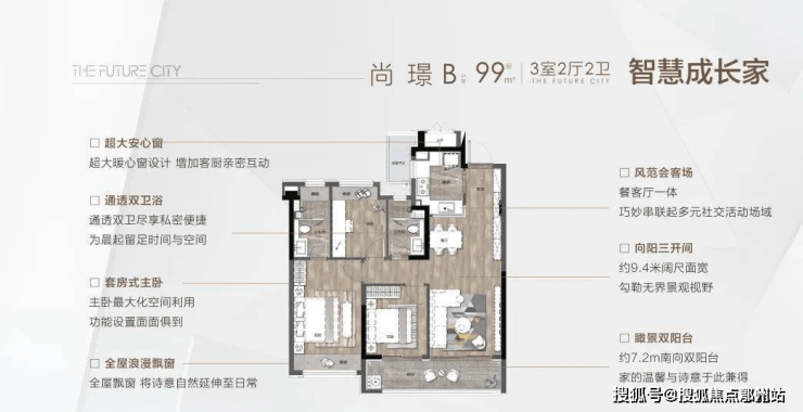 尚 璟 | B户型 | 建筑面积约99㎡ | 三室两厅两卫