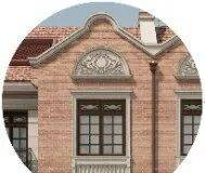 清水墙砖: 每块经900℃窑火淬炼的定制红砖,以上海传统「梅花丁」工法逐砖铺陈,以工艺最复杂的「元宝缝」错缝排列,形成横平竖直、砖缝如线的视觉韵律。