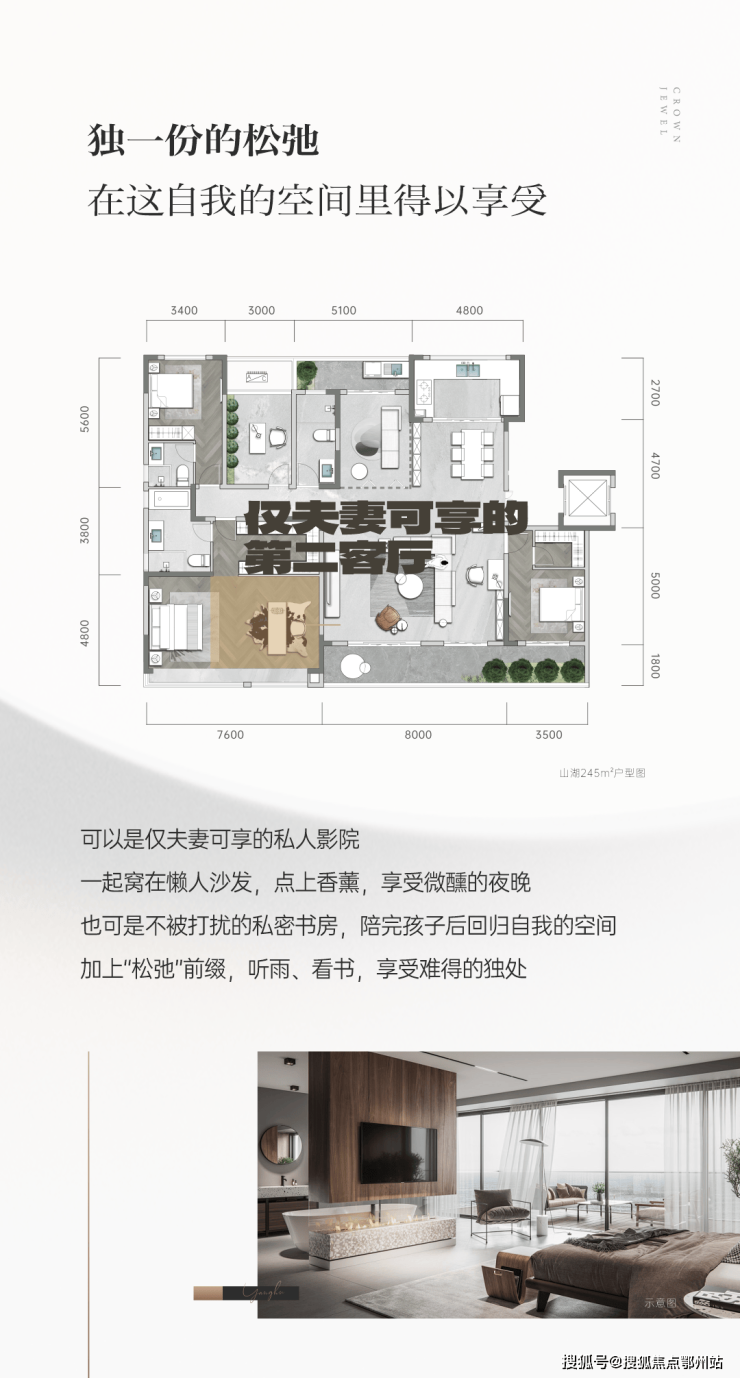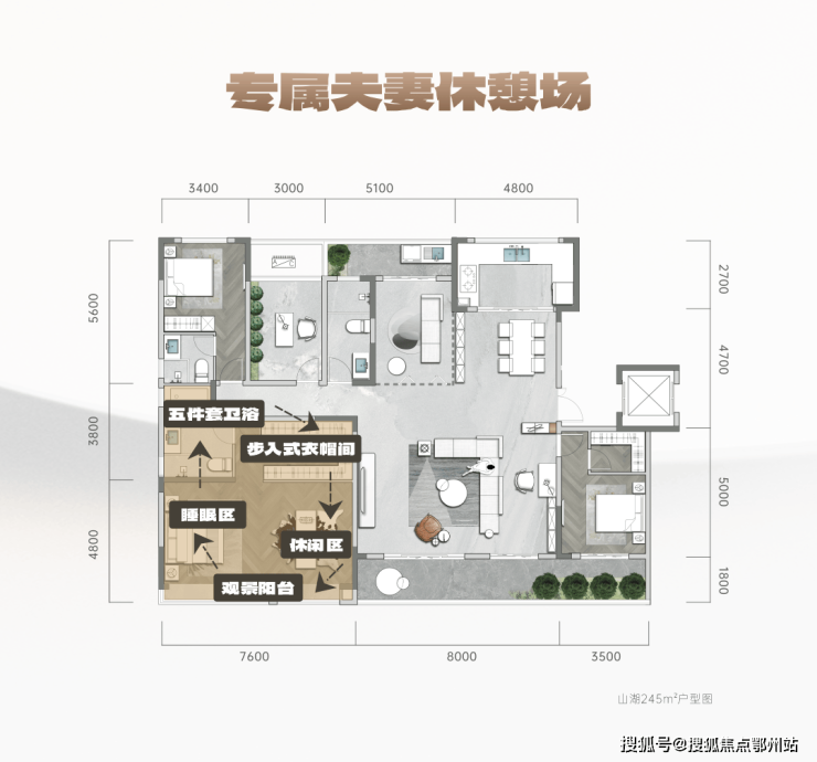主卧系统尺度——山湖245打造约58㎡主卧大空间,打遍市面300㎡户型无敌手。