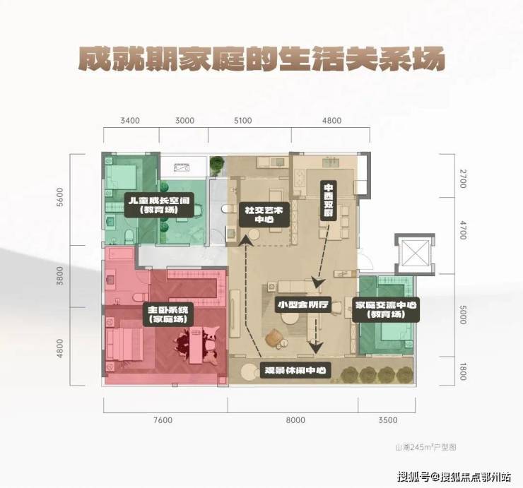 中建·钰山湖调研发现,越是成功家庭越注重在忙碌中寻找平衡,他们需要一个大的家庭空间来培养夫妻感情,一个独立的成长空间陪伴下一代;他们不再局限于物质享受,开始追求精神与志趣的丰盈,他们需要更开阔的社交场域承载人生进阶的社交。换言之, 成就期家庭的理想居住需要一个彰显身份的社交场、一个培养夫妻感情的家庭场和一个能陪伴成长的教育场。