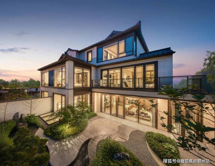 中式院落的立面造型是在徽派基础上的当代表达,将古典建筑中粉墙黛瓦与自然景观之间形成色彩搭配与对比,结合现代风格建筑,打造形神兼备、有时代气息的新中式建筑。