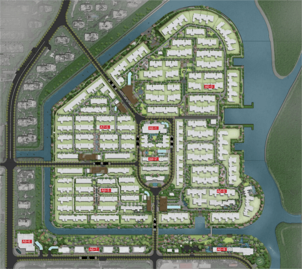 住宅地块:A7-5,A9-5地块为三层住宅(0.7容积率),A8-2,A6-3,A6-6地块为二层住宅(0.4容积率)。