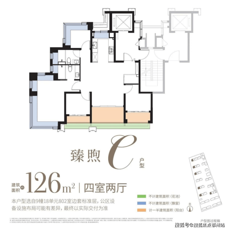 约126㎡4房:四开间朝南,附赠约30㎡,西边套一线临河,可享IMAX级观河景体验,全维度契合改善家庭的居住期待。
