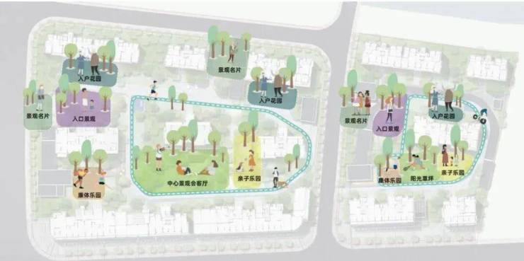 社区还分别配置超200米专业乐活跑道环绕园区主要景观区域,沿途设置多个休憩、超跑节点,在健康乐跑的期间也可以欣赏到园区景色。全区无障碍等智能、人性化设计,从户内到社区,从儿童到成人,构建了全龄化、全周期的健康生活体系。