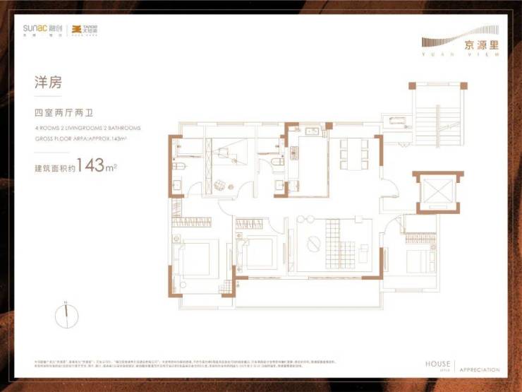 建面约143㎡四室两厅两卫▼