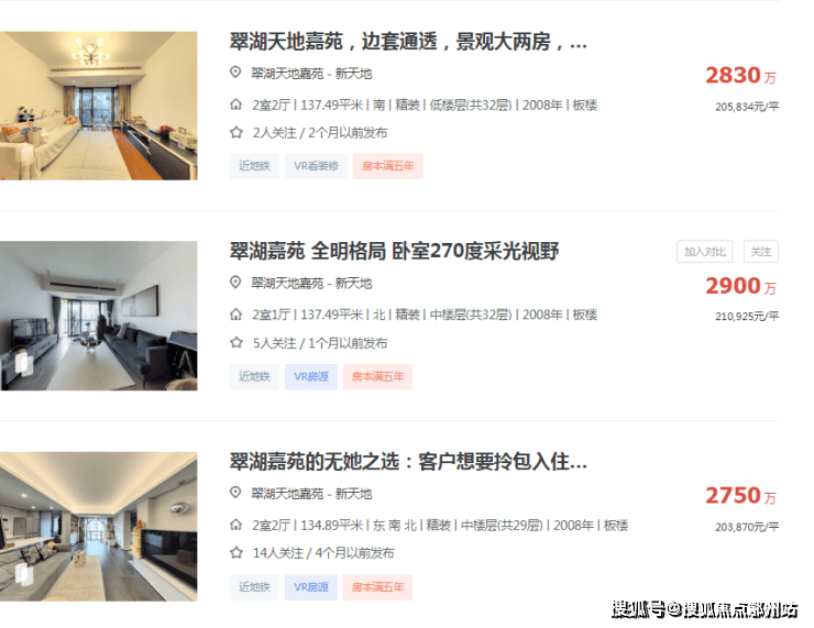 三期嘉苑目前挂牌在售也是140㎡左右2房,但大多是非南北通透的全朝南户型。