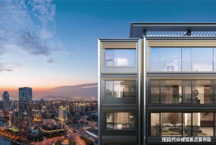 建筑立面,逸庐采用现代东方美学的建筑理念 ,大面积石材+铝板+玻璃+金属格栅+金属构建等材质,整体建筑设计是大面宽、高窗地比。