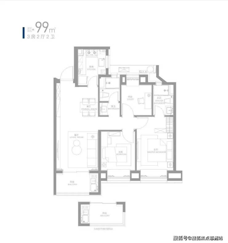 约99㎡三房两厅两卫,三开间朝南+全卧室、卫生间均带飘窗;从项目首开便受到购房者追捧!