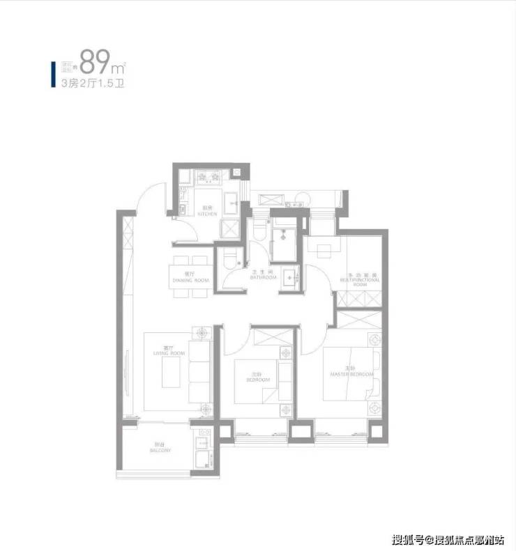约89㎡三房,1.5卫设计为临港首创,在总价可控的基础上兼具实用性,深受临港刚需购房者偏爱。