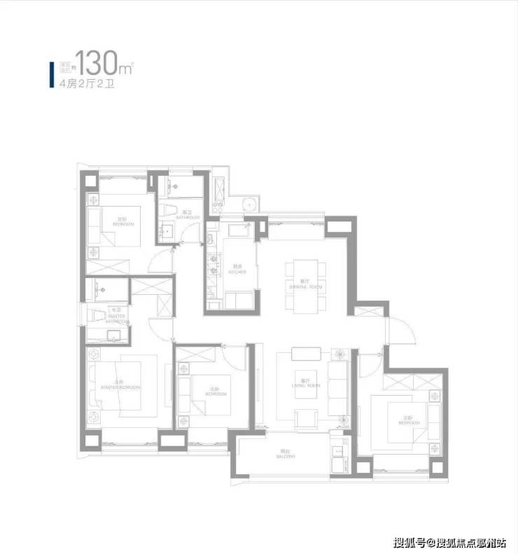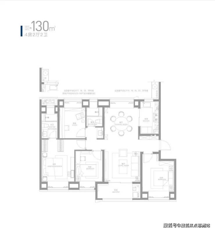 约130㎡四房同样是楼王位置,约13.5米整体面宽,享受开阔景观视野的同时兼顾实用;