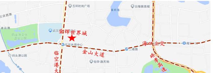 金辉世界城位于临空港大道与金山大道交汇处,楼市划分属于临空港新城板块,行政划分属于东西湖区,距离三环线约3公里,属于三环外。