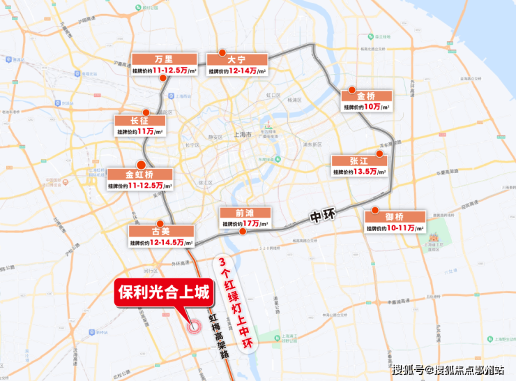 自驾方面,项目紧邻虹梅路高架,从项目出发,仅需3个红绿灯就能上中环!