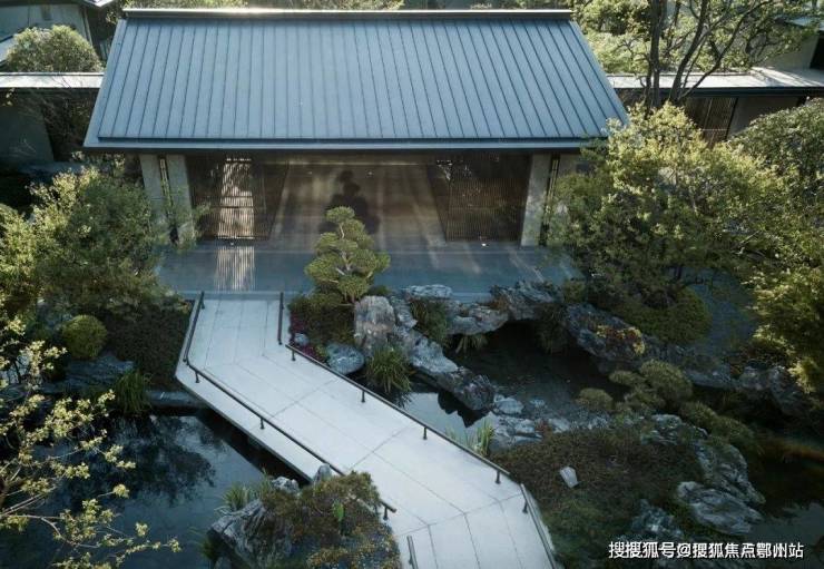 以水、山、石、植相结合打造而成,建筑与水池相互呼应,虚实相间,儒雅气质舒散开来,自然禅意之感油然而生。