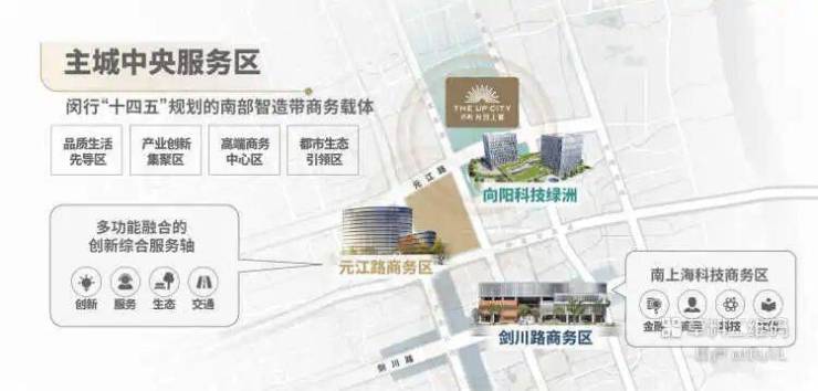 闵行主城南部单元作为上海南部科创中心核心区,与虹桥同频共振,形成南北联动发展格局,成为上海版图中心 “金钥匙”。