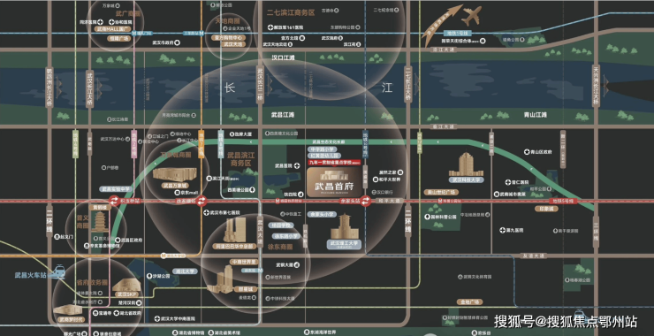 项目周边武昌核心商圈、徐东商圈、武昌万象城商圈、二七滨江商圈等商圈环伺,还有武商梦时代、武昌万象城、武汉SKP等现象级商业地标。