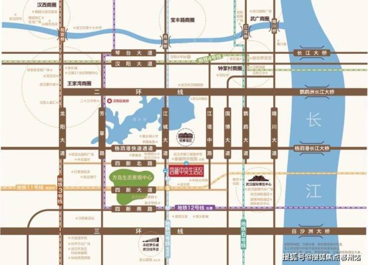目前,四新片区规划投资建设有66条道路,三环线、四新大道、二环线和龙阳大道,江城大道、国博大道构筑的“三纵三横”的交通大动脉,快速连接武汉三镇。其中,江城大道是汉阳连接汉口和沌口的快速通道,四新大道则是区域内的交通主轴,而今天我们的主角——四新中央生活区,就位于这两条主干道的交汇处。