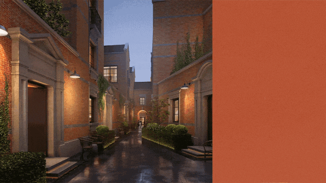 外立面采用保加利亚进口沉香米黄石材与巴西奢石波多尔红,复刻原汁原味的红陶砖镶嵌工艺,巷道尺度亲密而不失格调,重现海派烟火气与历史肌理。