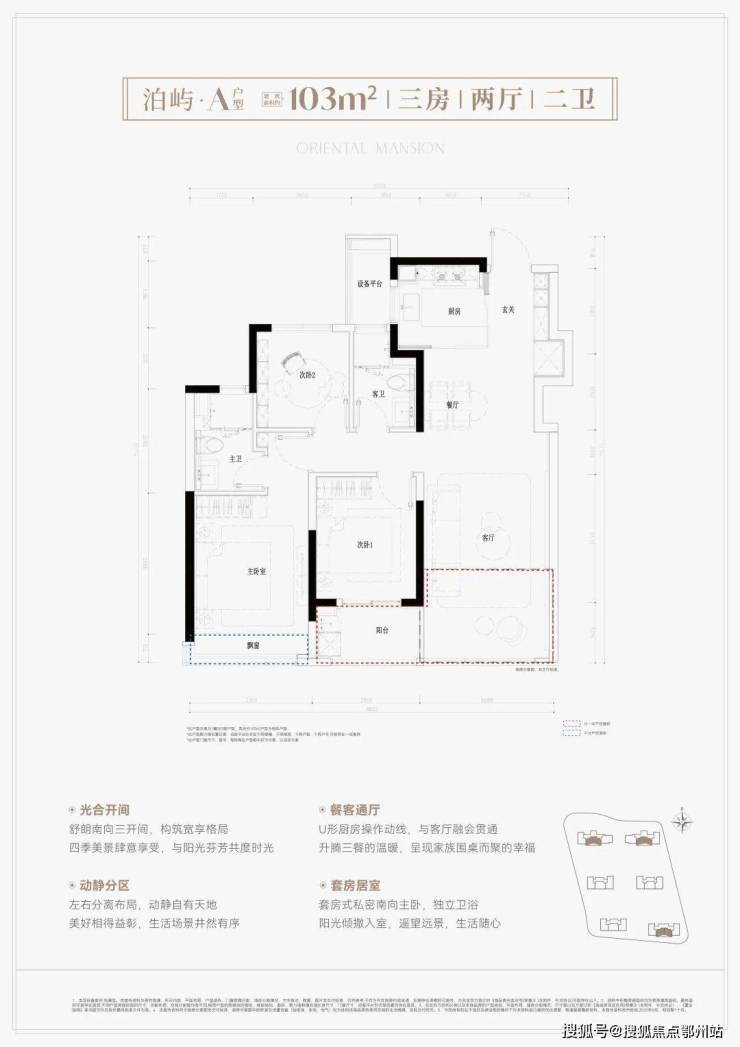 南向三开间朝南,约9.8米大面宽,约7米阔绰阳台,餐客厅贯通,并连接阳台,百变待客空间;套房式主卧,南联阔景飘窗,栖居更温馨舒适。