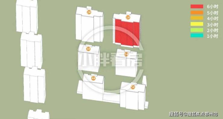 分析结果是这样:计算已考虑周边所有建筑的影响,结果表明南边住宅不会对本次开盘楼栋产生遮挡,楼栋仅受地块内部影响。(说明:本文日照数据基于公示规划图纸文件,使用专业制作工具完成,仅供参考)