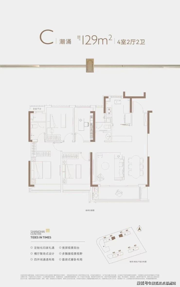 第二,项目本次推出的建面约129㎡4房, 是区域目前在售的4房户型。