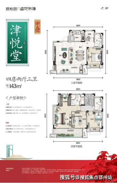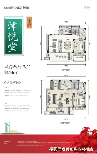 南苑区分别是【叠拼】津悦堂(作为叠拼客户,一府揽东津,生活在此,诗意生活,悦然归家)、【小高】盛璟居(登高而望层层景致,于此可以看社区盛景,也可观看人生盛景)。