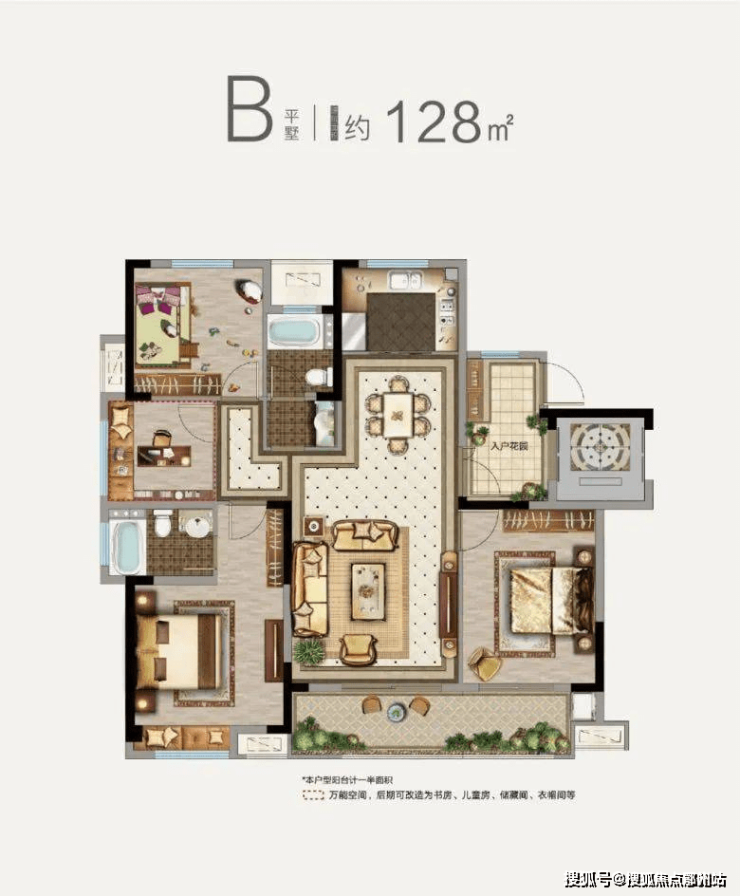 户型名称:洋房128㎡户型