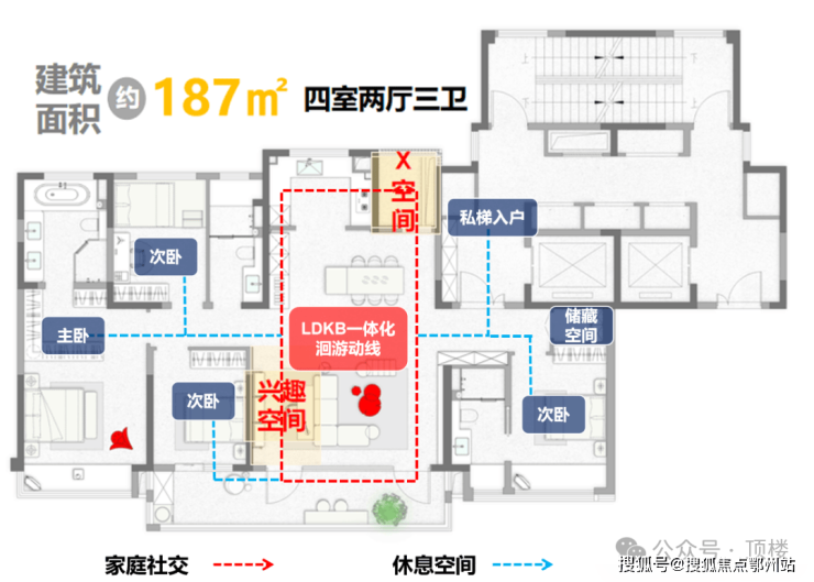 类一梯一户设计,南向约5开间设计,社交动线与休憩动线互不干扰,整个空间格局变得灵动起来。