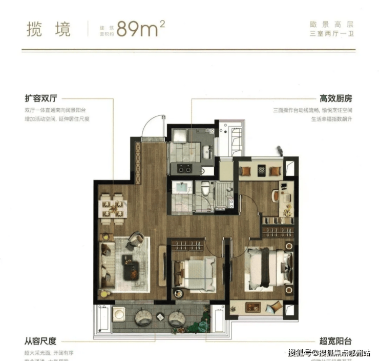 明媚的光线走入居住的时时刻刻,赋予生活更高级的奢适; 超大双跨阳台,闲时氤氲中品茗对弈,午后躺椅上开个小差,晚上与孩子嬉戏游戏,