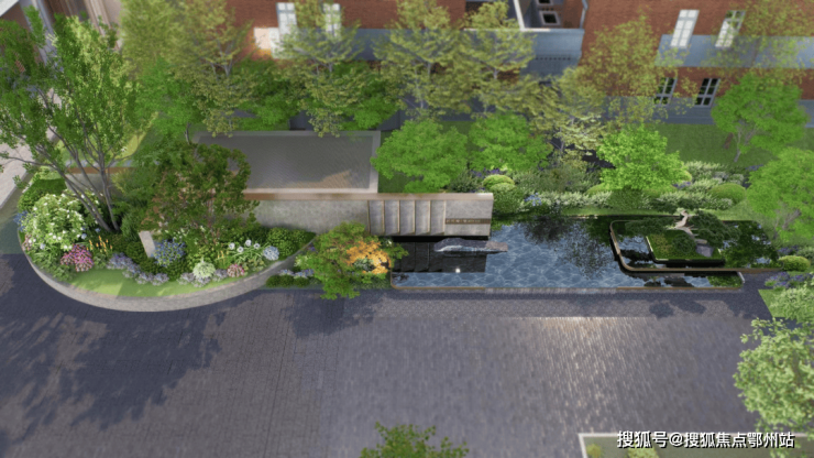 同时大门配有 水钵,黑松 ,这样的搭配不仅视觉上效果更好,也能中和掉材料本身的冷感。