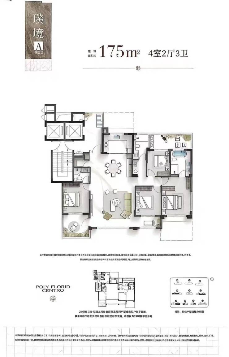 175平也是四代宅、四开间朝南设计,做到了双套房设计。