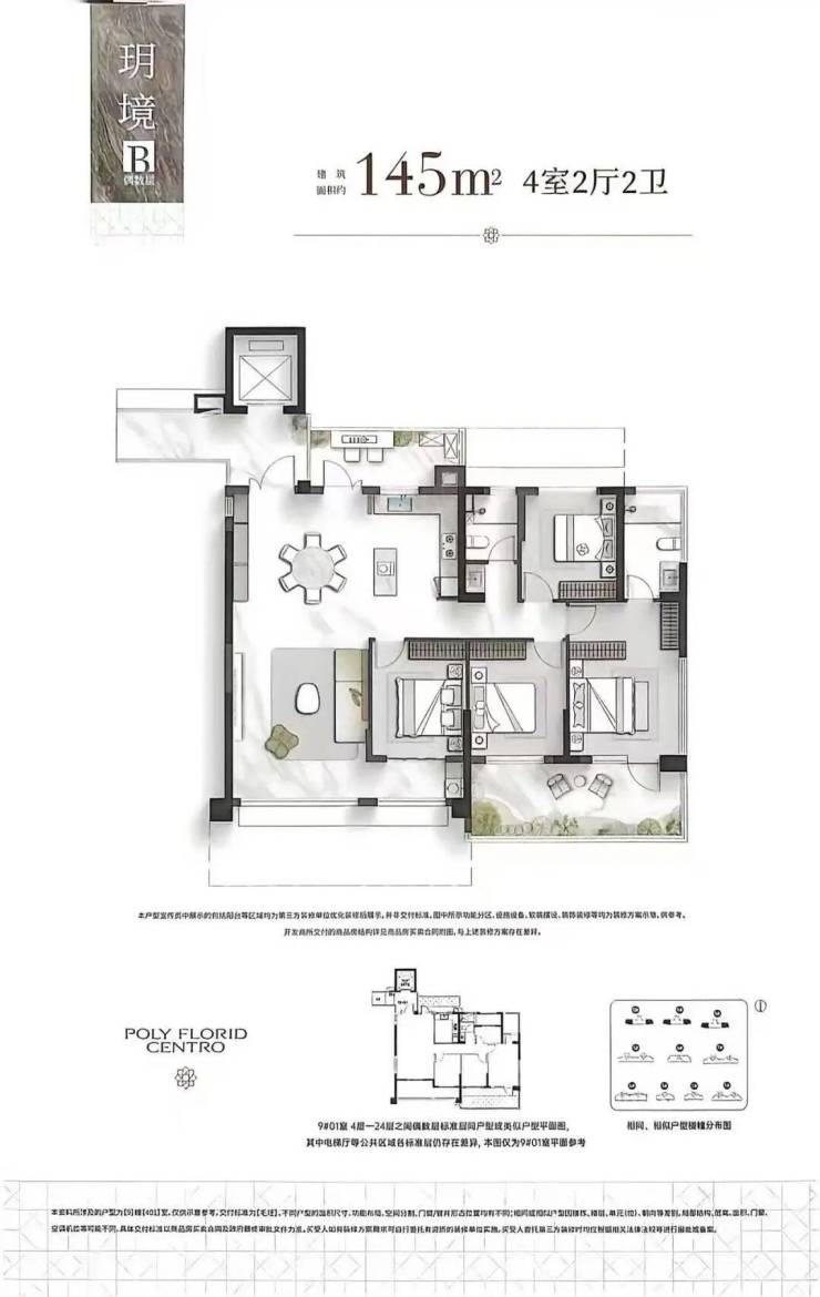 145平拥有独立的电梯,相当于是一梯一户,品质提升。145平也是四开间朝南,且是四代宅,南北都有露台赠送,奇偶层露台位置不同。另外主卧为两面采光,预计朝东会设计成落地窗。