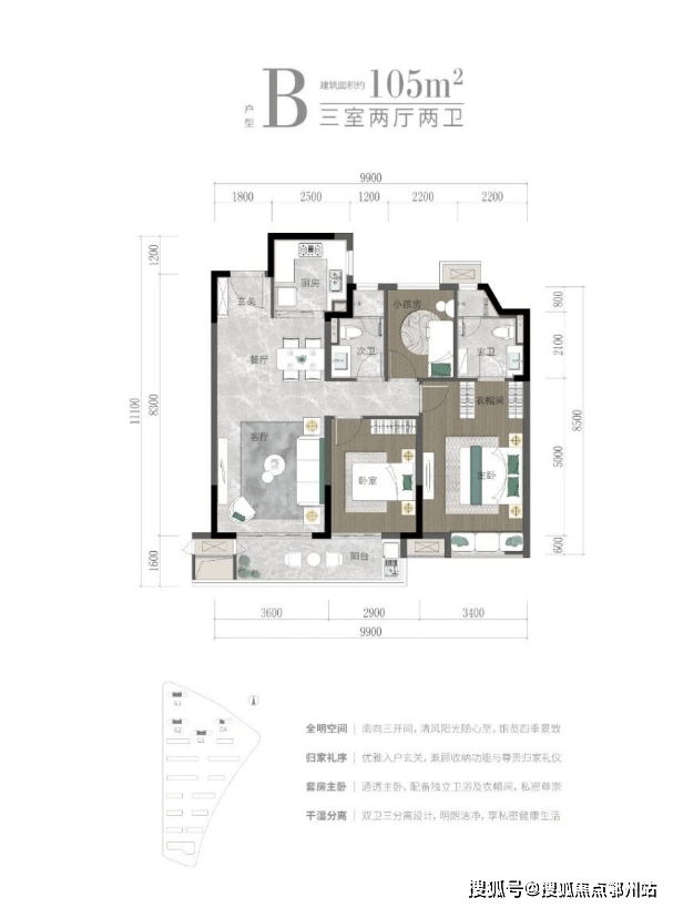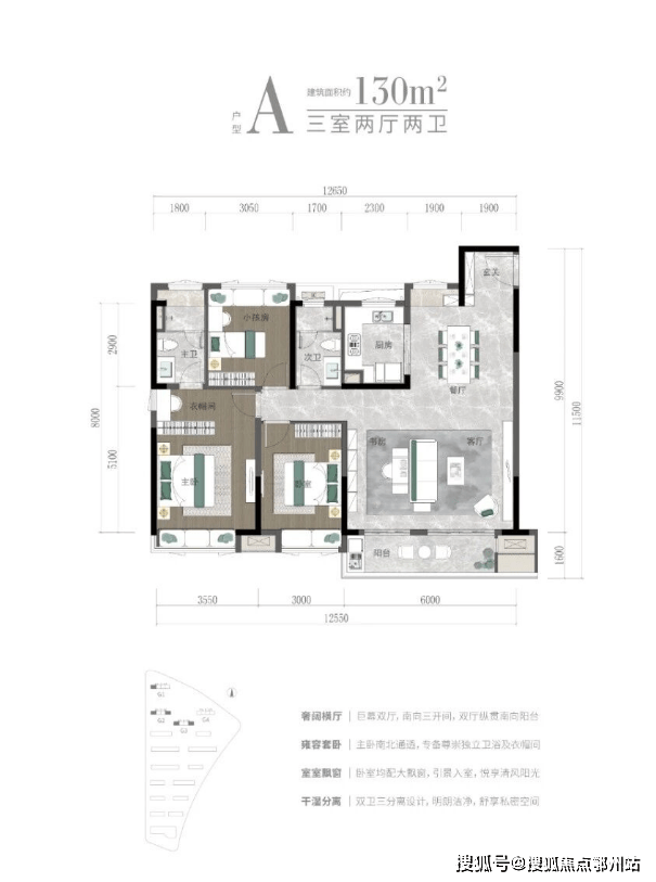 户型面积:建面约105-110-130㎡瞰山高层