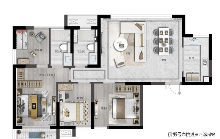 95㎡四室两厅:全明户型,功能分区优化