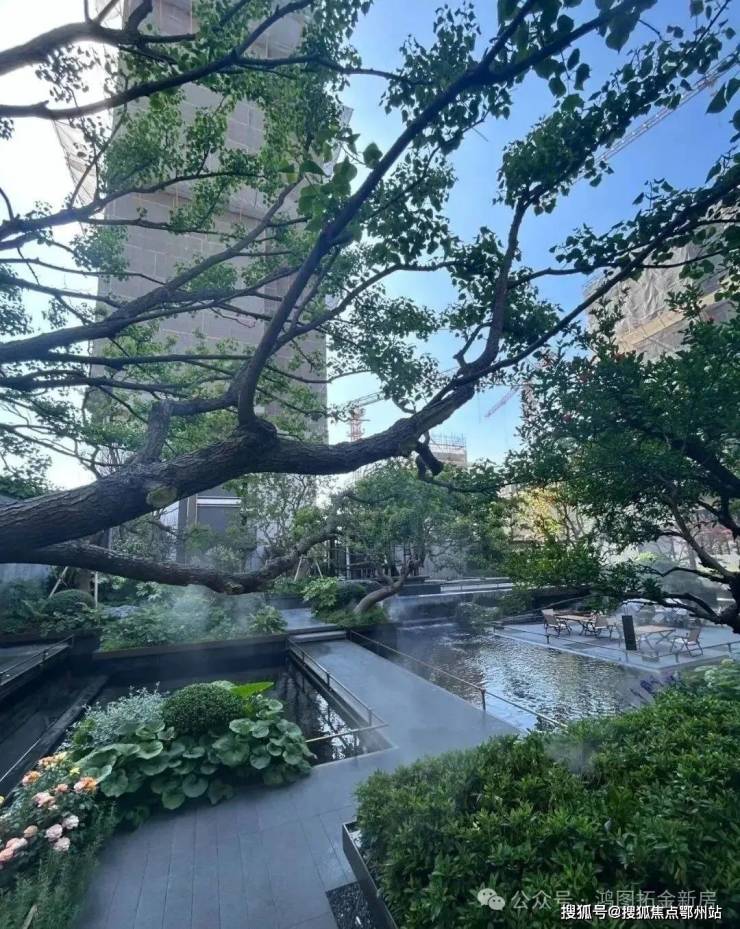 又比如,项目延续了张园“引水入园”的理念,将长200m近1000m²的水系覆盖到整个社区内。水景形态各异,有中心静水、三层跌水、点状涌泉、立面叠瀑、弧形流水五大不同呈现方式。水系的引入,让整个社区彻底灵动飘逸了起来。