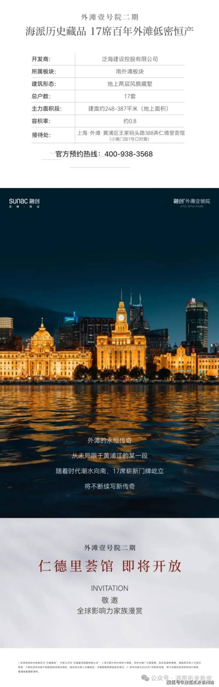 融创外滩壹号院二期风别墅来袭!海派藏品,17席百年外滩恒产!!