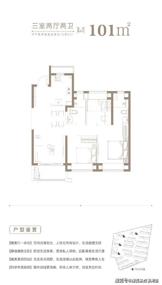 高层户型(84 - 101㎡三至四房),三开间朝南、双卫设计,全明通透,部分户型还能享受高尔夫视野。
