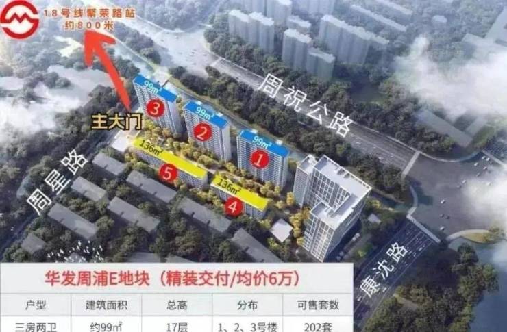 最新消息:浦东周浦18号线繁荣路站,步行约1KM,「华发观澜半岛」将推出262套高层+洋房产品,建面约99-136㎡3-4房。五批次已过会均价6万/㎡!