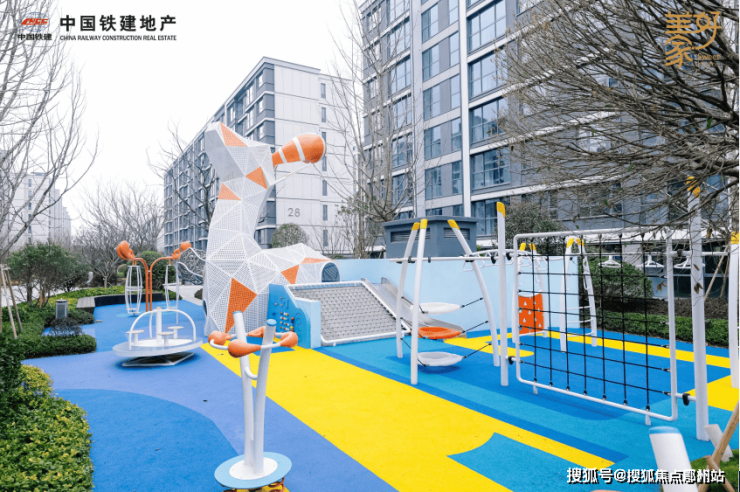 攀爬网、传声筒、蹦床、长颈鹿秋千、涂鸦墙、......造型灵动色彩丰富,同时满足家长陪伴看护及婴儿车停放点。林荫环绕的活动场地,染上绮丽梦幻的自然色彩,描绘属于孩子的绘本童话,让好奇心的种子飞向未来。