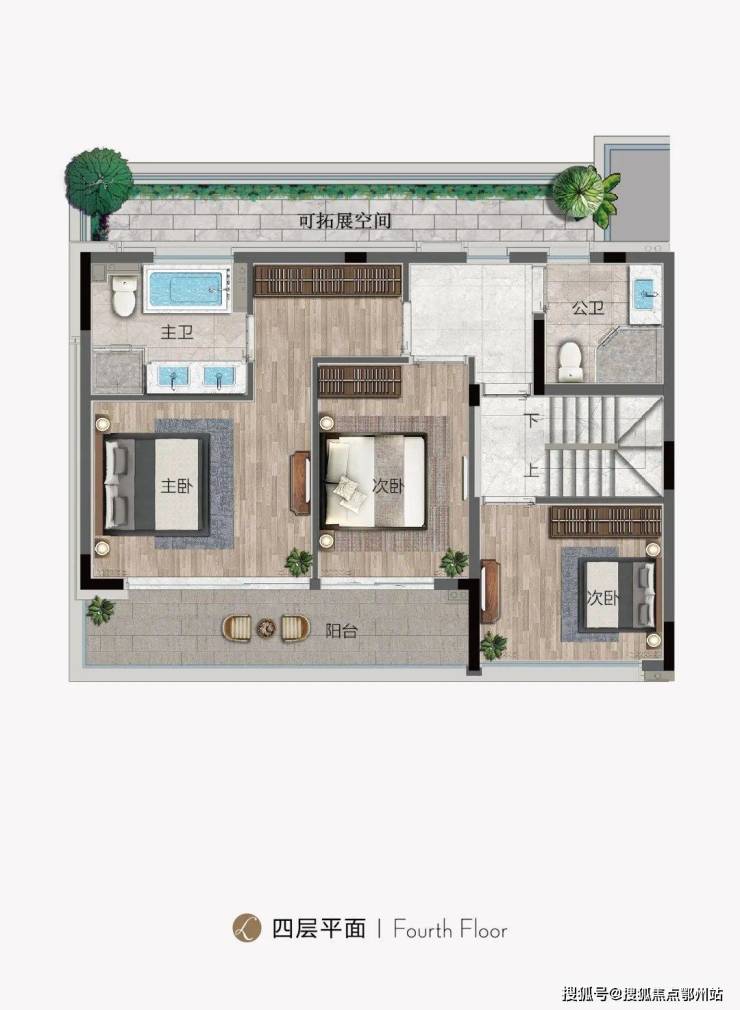 上叠:以195㎡的五房四卫,除了二层规划了朝北露台外,三层的空中阁楼,从多功能空间推门而出,竟然是一个“270°环幕式”生活露台,面积有70㎡左右。它可以是你抽离纷杂尘世的秘密花园,也可以是朋友聚会的快乐之地。