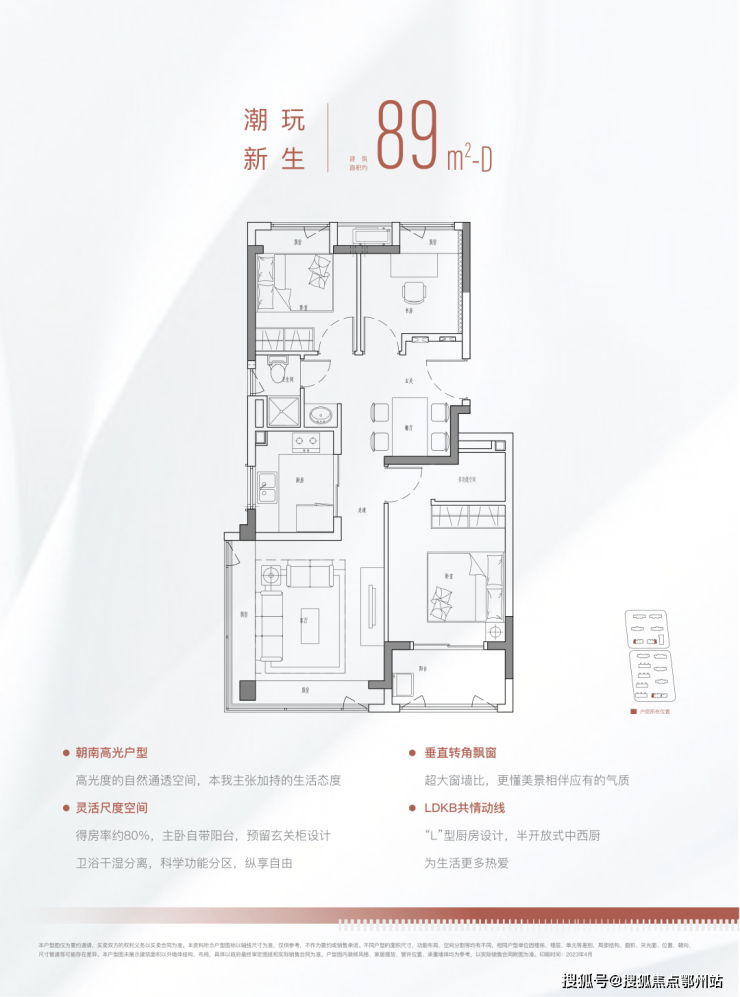 除了三开间朝南的经典户型,89m²还做了三面通风的户型。