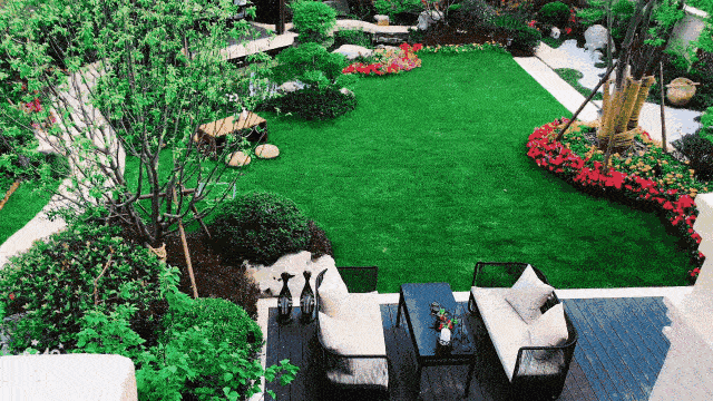 带来整夏的清凉,也也将成为别墅庭院的点睛之笔。干净规整的大草坪、均匀摆放的枕木路、撒落在周围的鹅卵石、满阶的玫瑰还有一架的蔷薇,闲暇时候,老人们则可以在这里享受侍花弄草的乐趣。